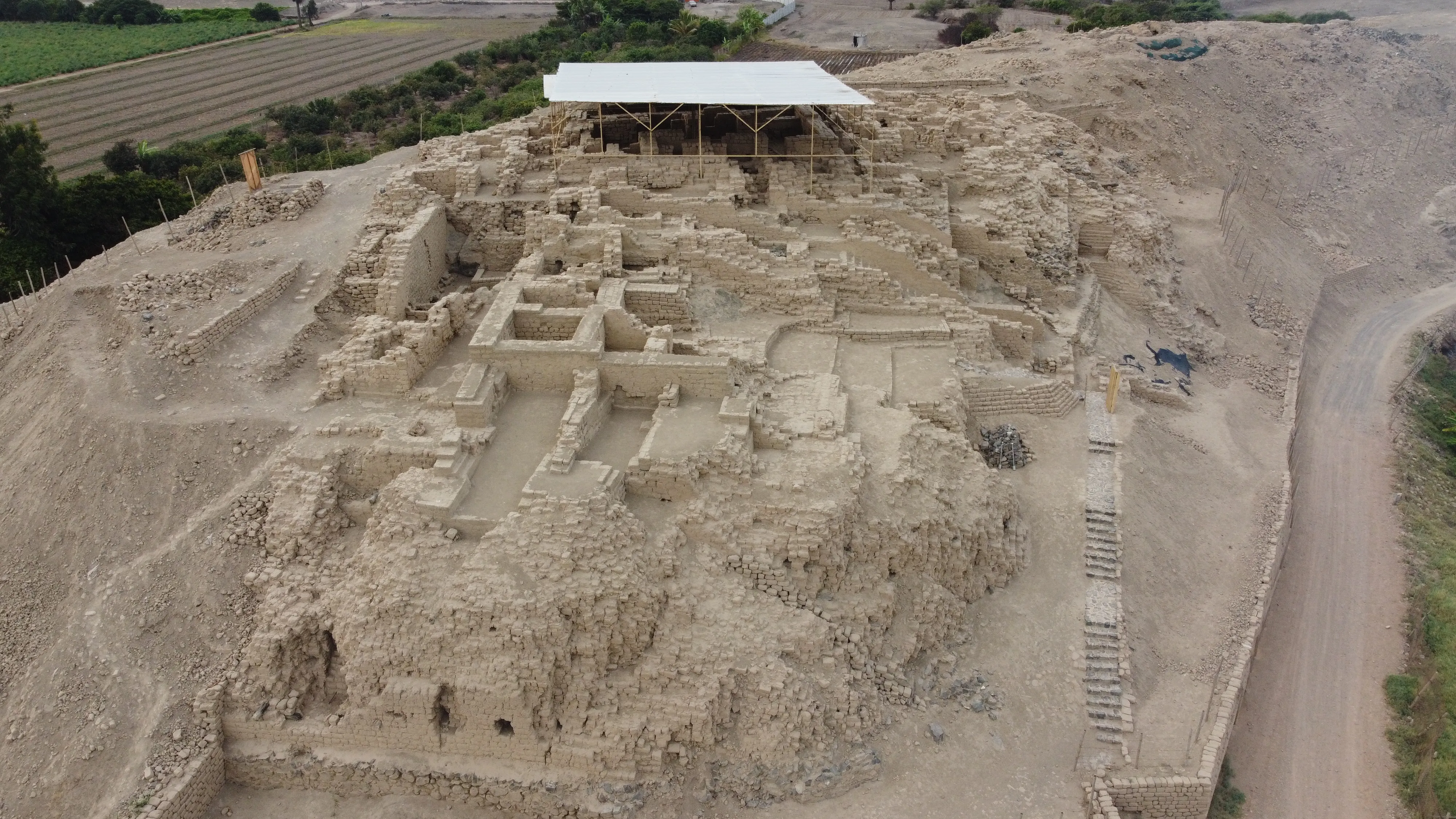 Su estructura está conformada por plataformas, recintos y pasadizos construidos principalmente con adobe, lo que evidencia el alto nivel de organización arquitectónica de sus antiguos habitantes. Además, el lugar ha sido escenario de importantes hallazgos arqueológicos, incluyendo tumbas de élite que han permitido conocer más sobre la vida, costumbres y jerarquías de las antiguas civilizaciones del Perú.